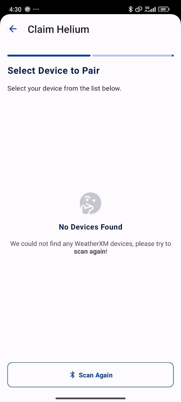 if you experience connection issues while claiming a WeatherXM Helium station, make sure you are near the station.